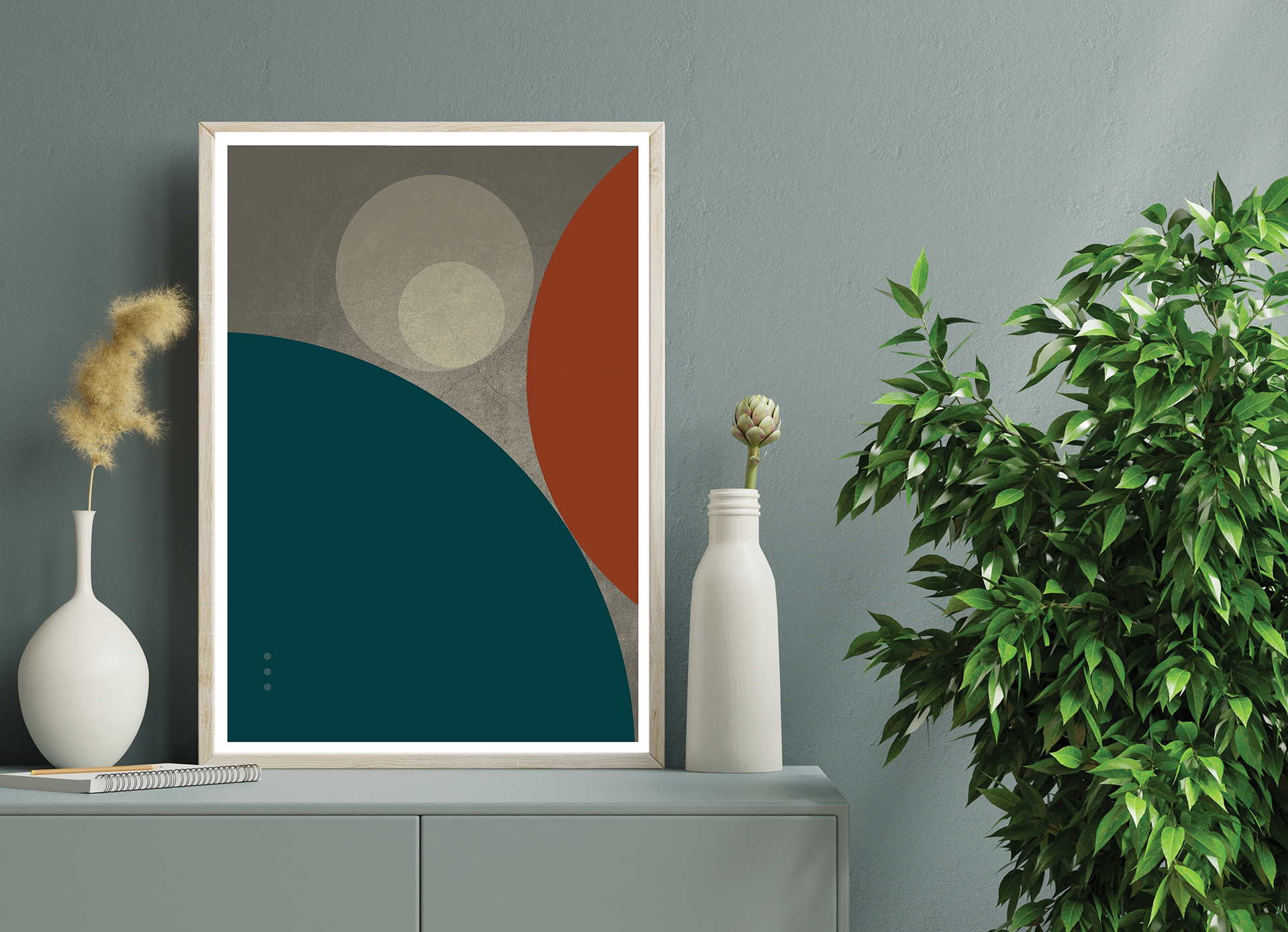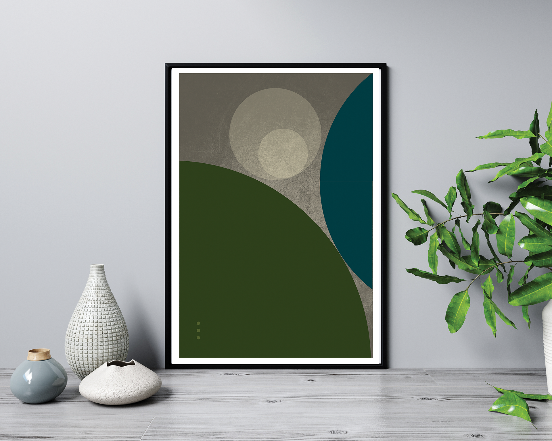 Art Print: Minimalist Geometric in Gray and Teal