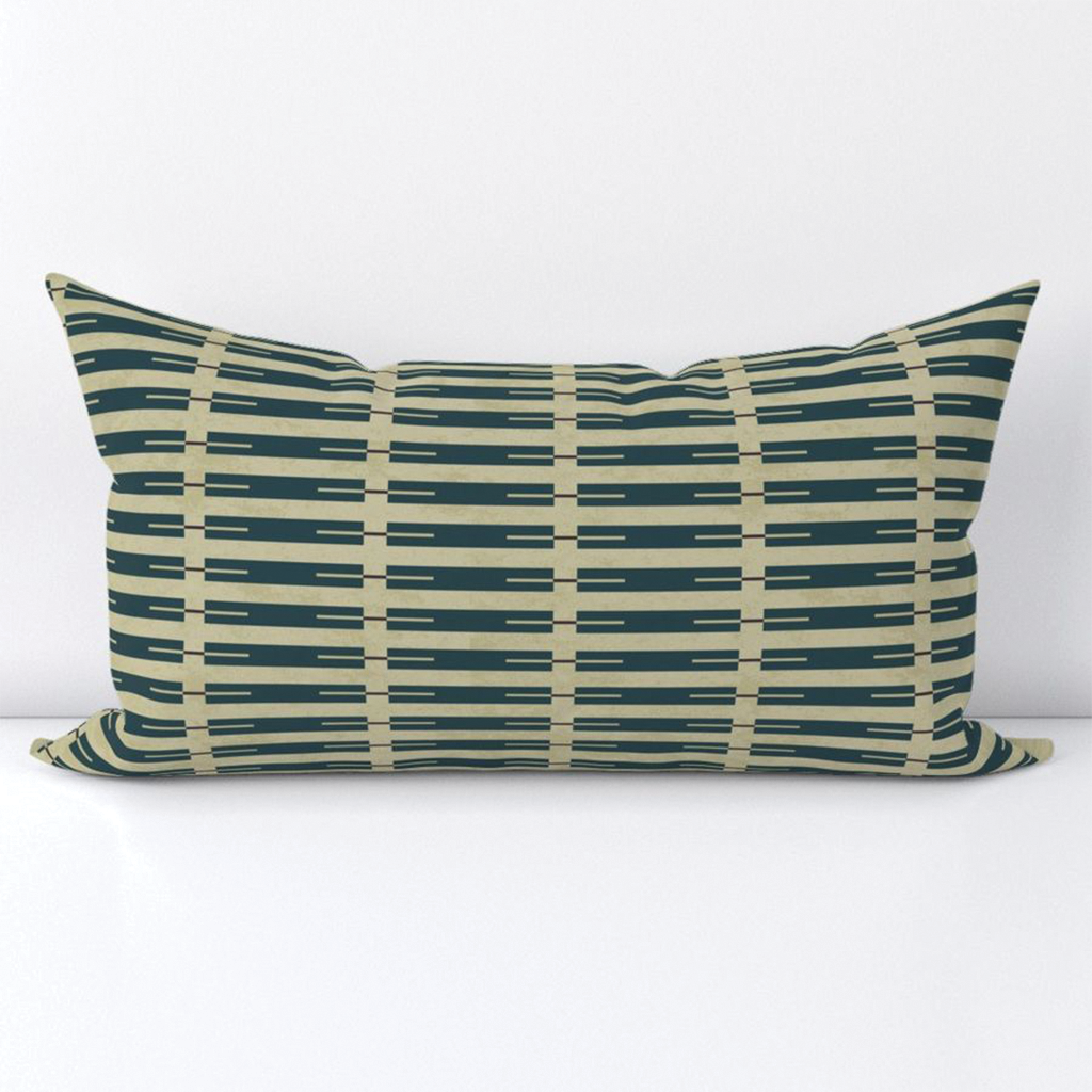 Horizontal indigo blue stripes and thin plum and buff rules in a traditional Japanese color palette, align across a softly textured warm buff background.