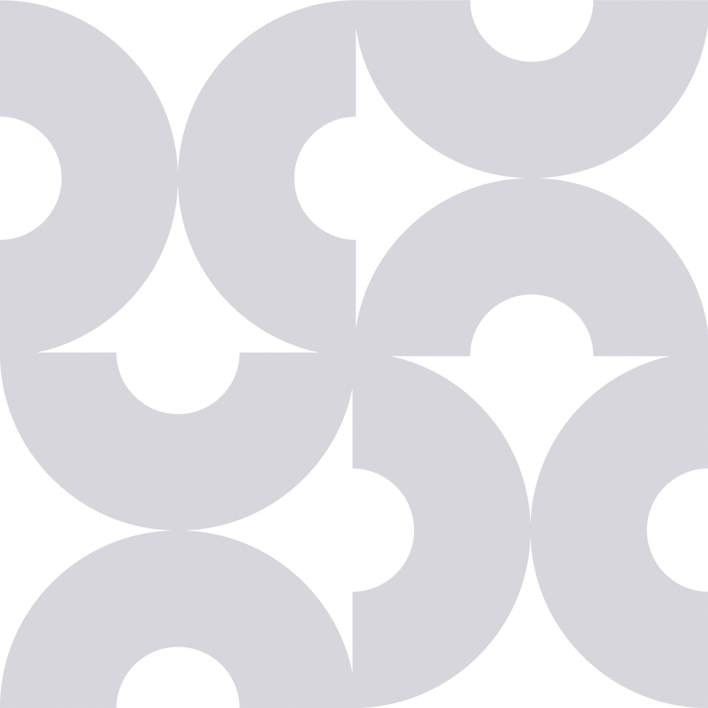 A bold, crisp geometric pattern in two sizes of split rings, available in faded cyan, pale pink, washed lavender, soft celadon, and pale celery.